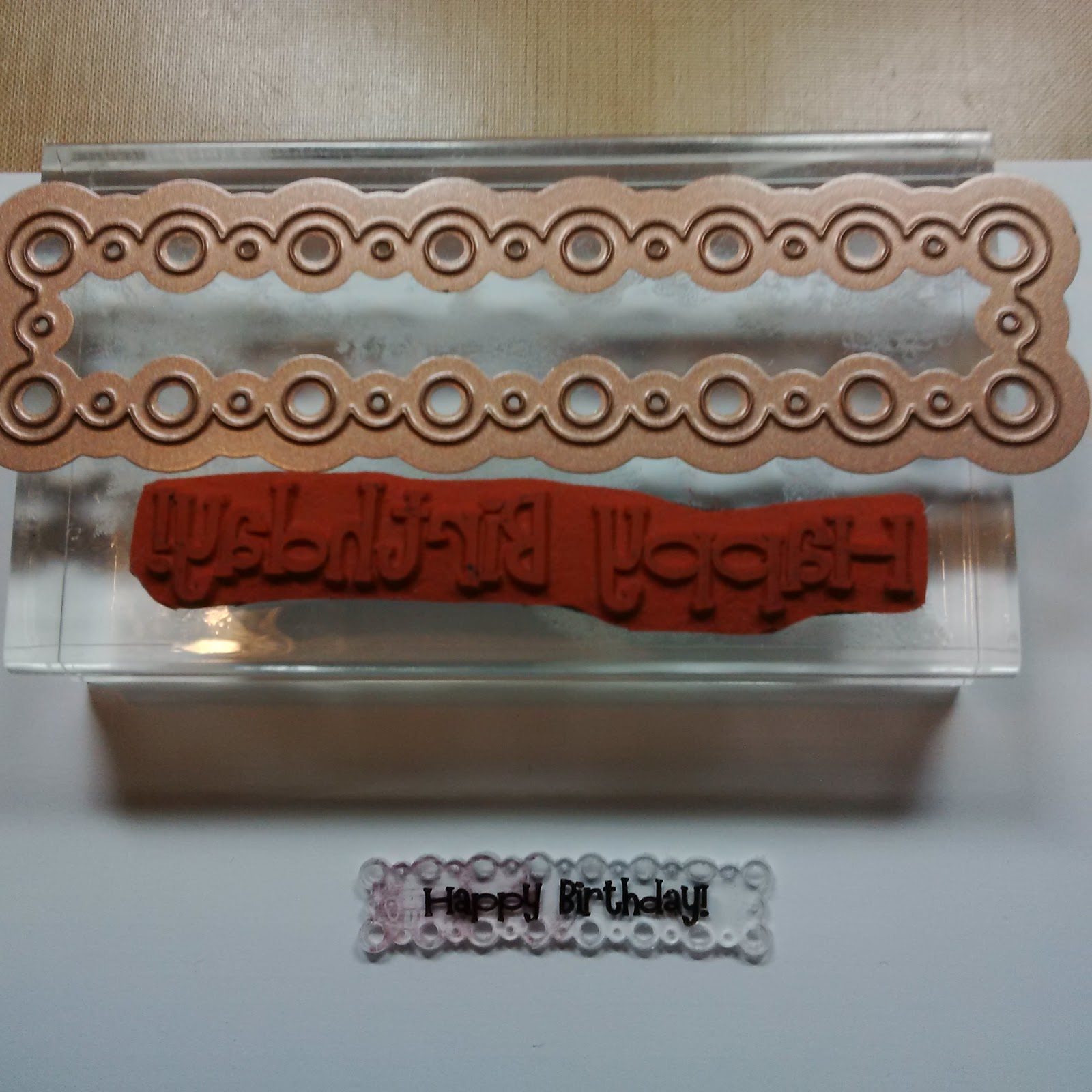 In the last example I have cut out the plastic using my Spellbinder Pearl Effects Die then stamped on the High Hopes Stamps Bold Happy Birthday sentiment using StazOn ink....